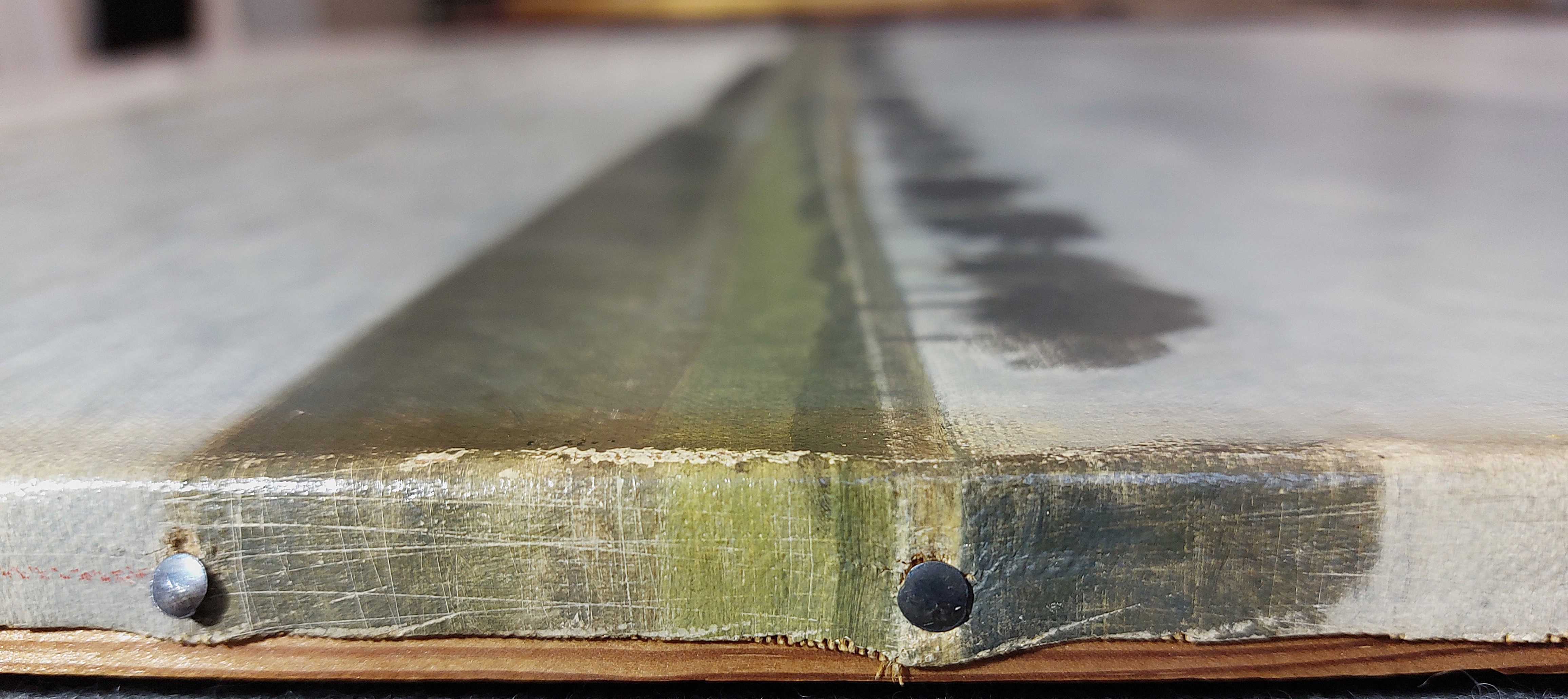 Varnish throughout the front of the painting.