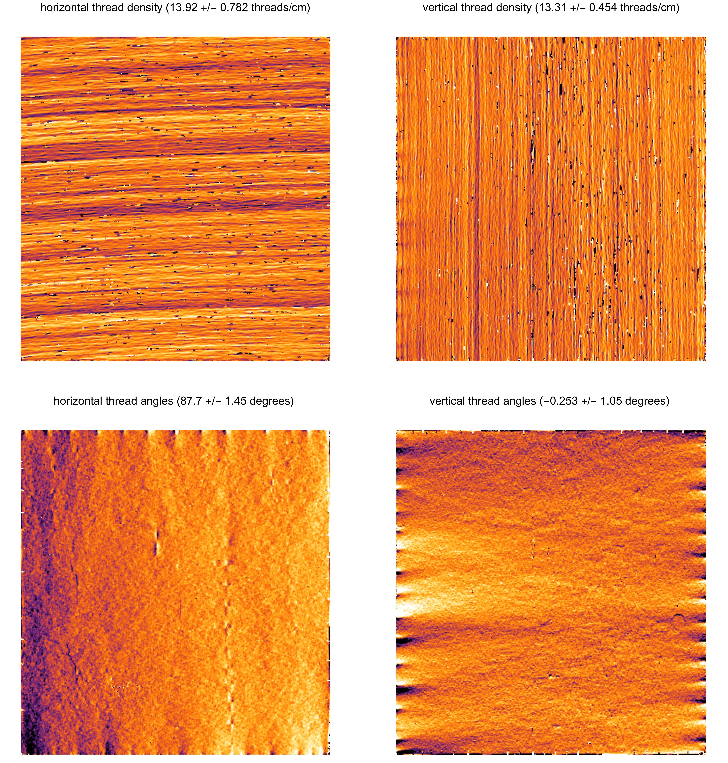 Weave maps are detailed visualisations of the thread patterns in a canvas, created by applying thread counting on high-resolution x-radiographs. These are used for analysing the structure of the canvas and to compare canvases used in different paintings. A comparison between weave maps can sometimes determine if two or more pieces of canvas derive from the same batch and thereby shed light on the place and period in which a painting has been created.