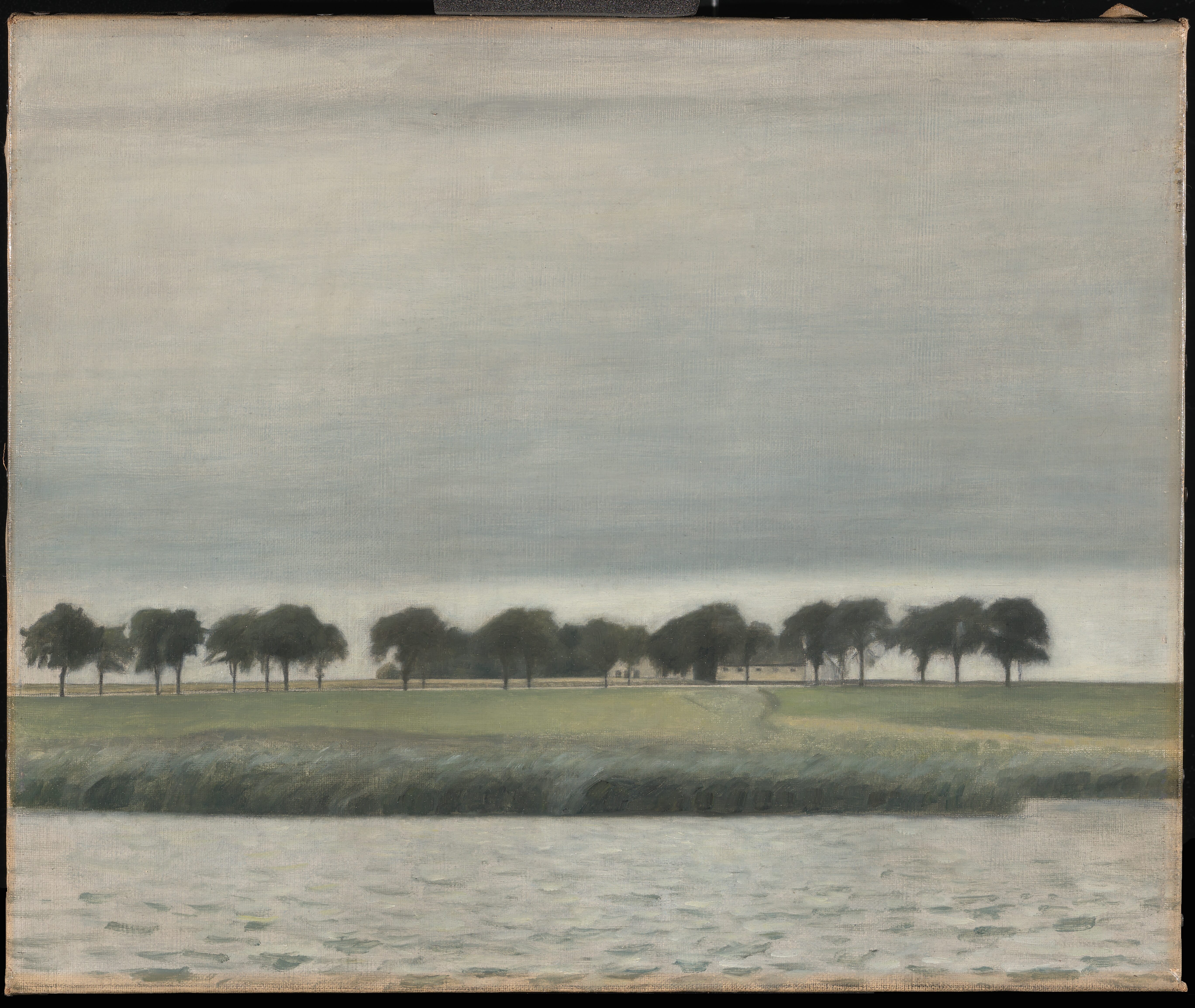 In the summer of 1903 Hammershøi stayed for a while in the small town of Gentofte north of Copenhagen, where he painted some remarkable views overlooking the Gentofte Lake, cf. Hvidt and Oelsner, 2018, p. 206-207. Hammershøi had previously found motifs in the trees of the background in the same area when painting the Kongevejen/today Jægersbog Alle in 1892. One of the paintings in this series belongs to The David Collection, inv. Nr. B 7/2016.