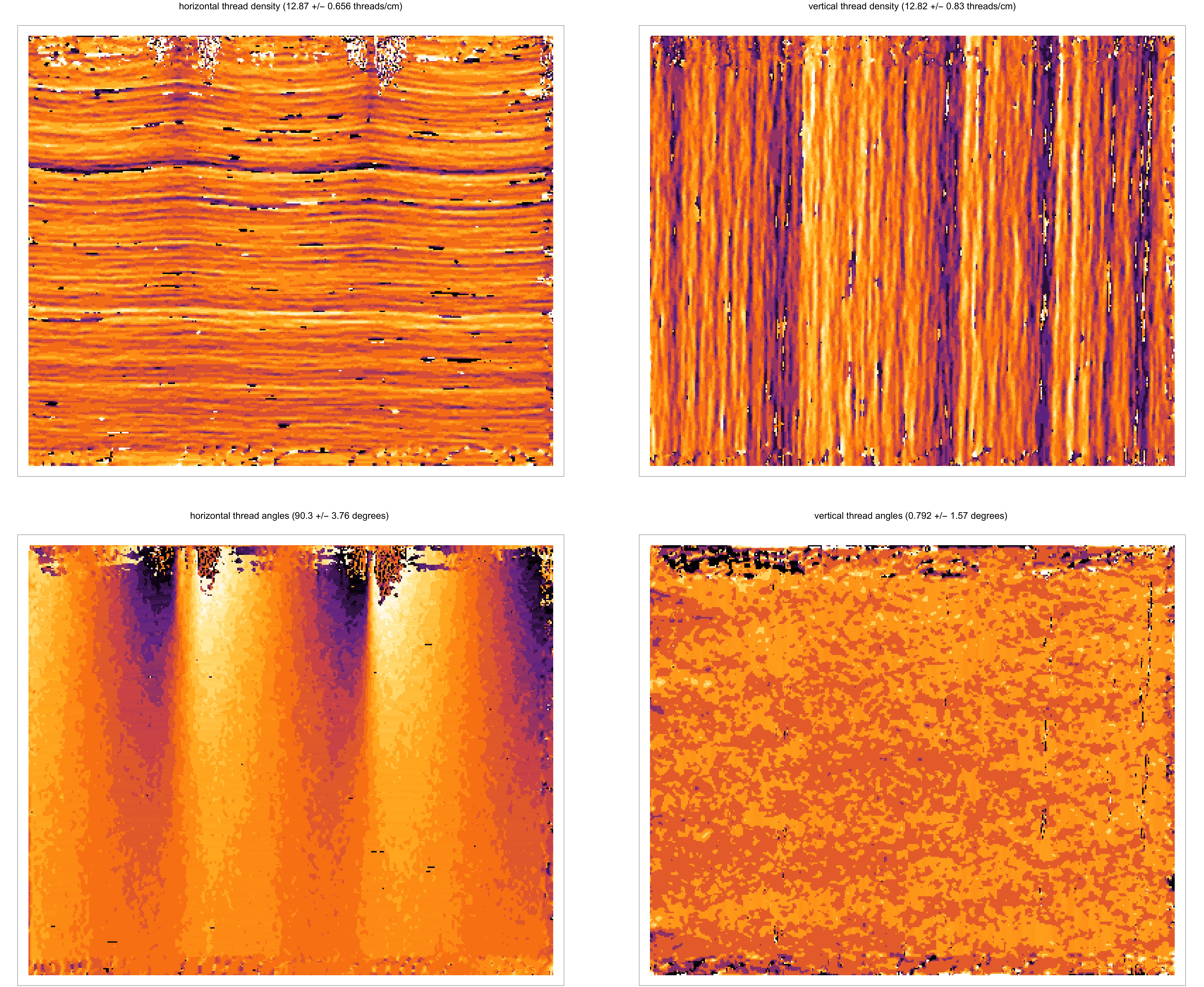 Weave maps are detailed visualisations of the thread patterns in a canvas, created by applying thread counting on high-resolution x-radiographs. These are used for analysing the structure of the canvas and to compare canvases used in different paintings. A comparison between weave maps can sometimes determine if two or more pieces of canvas derive from the same batch and thereby shed light on the place and period in which a painting has been created.