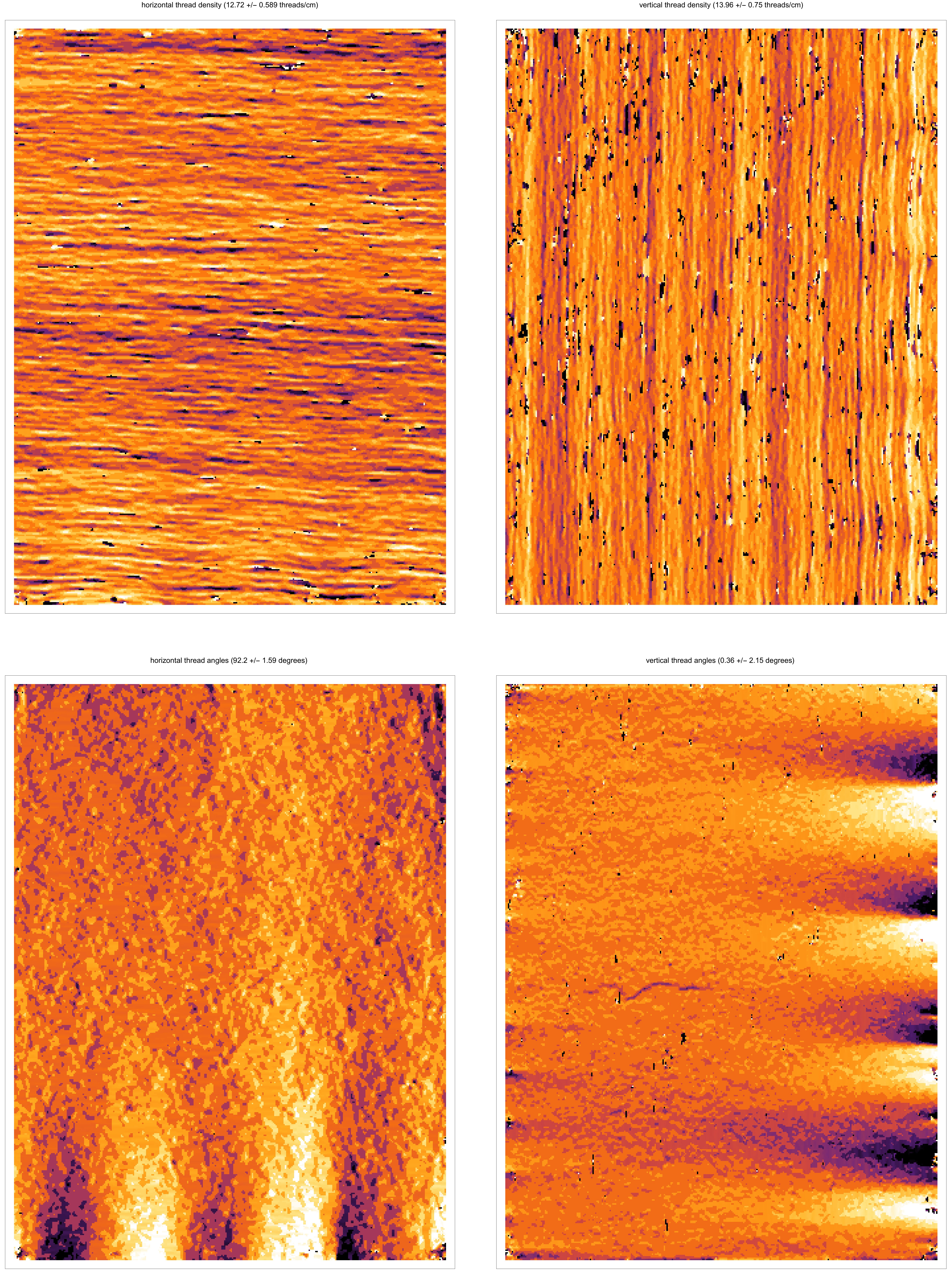 Weave maps are detailed visualisations of the thread patterns in a canvas, created by applying thread counting on high-resolution x-radiographs. These are used for analysing the structure of the canvas and to compare canvases used in different paintings. A comparison between weave maps can sometimes determine if two or more pieces of canvas derive from the same batch and thereby shed light on the place and period in which a painting has been created.
