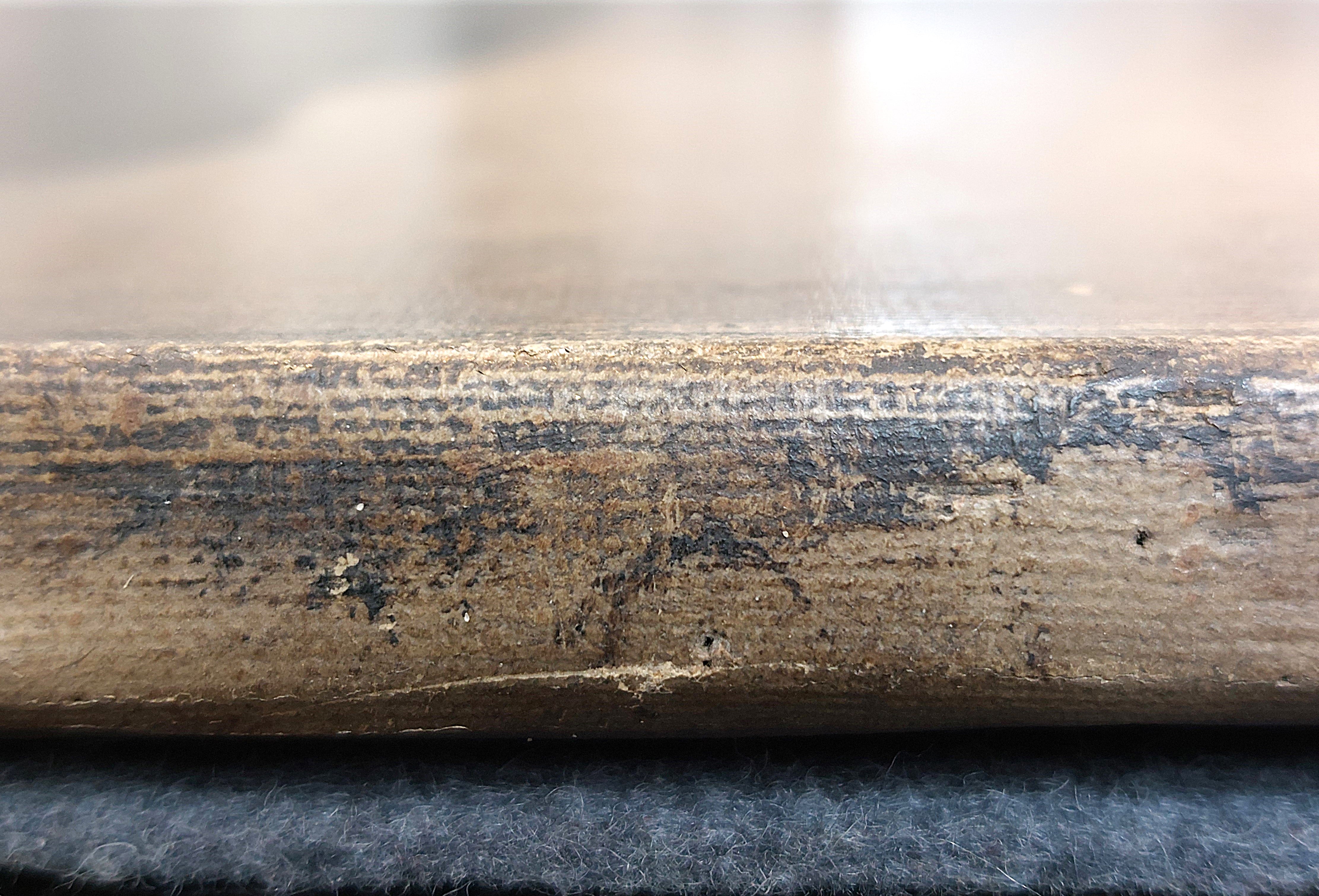 Et rundt mærke fra en tegnestift på den øverste ombukningskant.