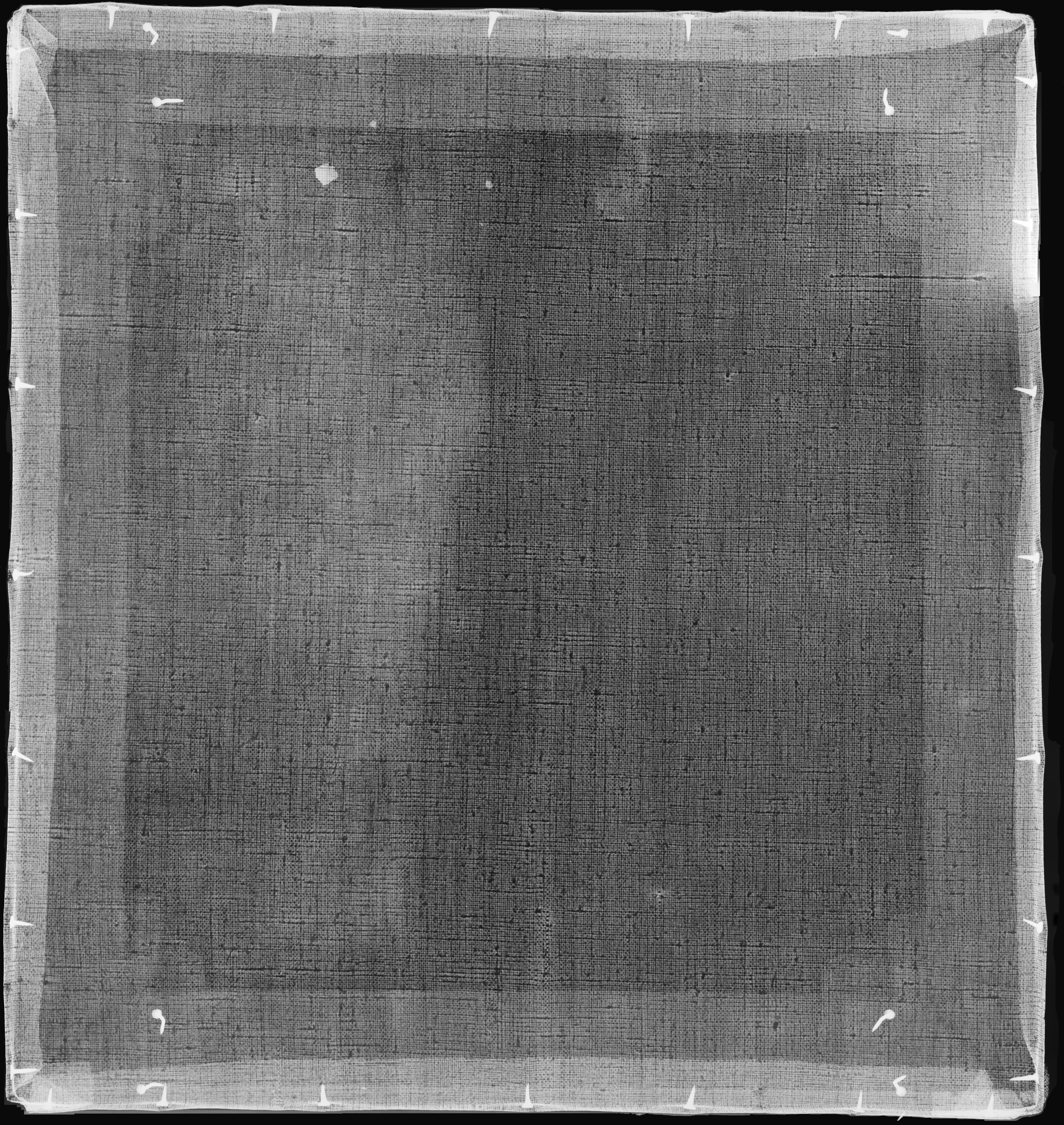 Under udførelsen af maleriet blev det grundede lærred højst sandsynligt monteret med tegnestifter på en plade