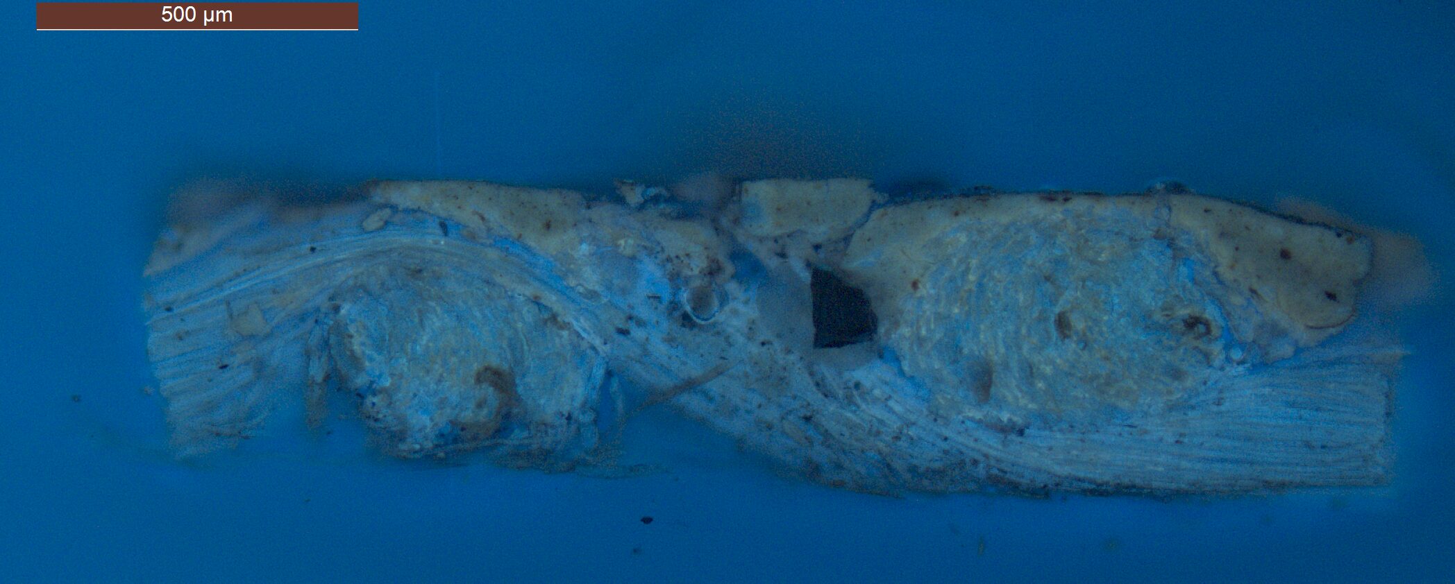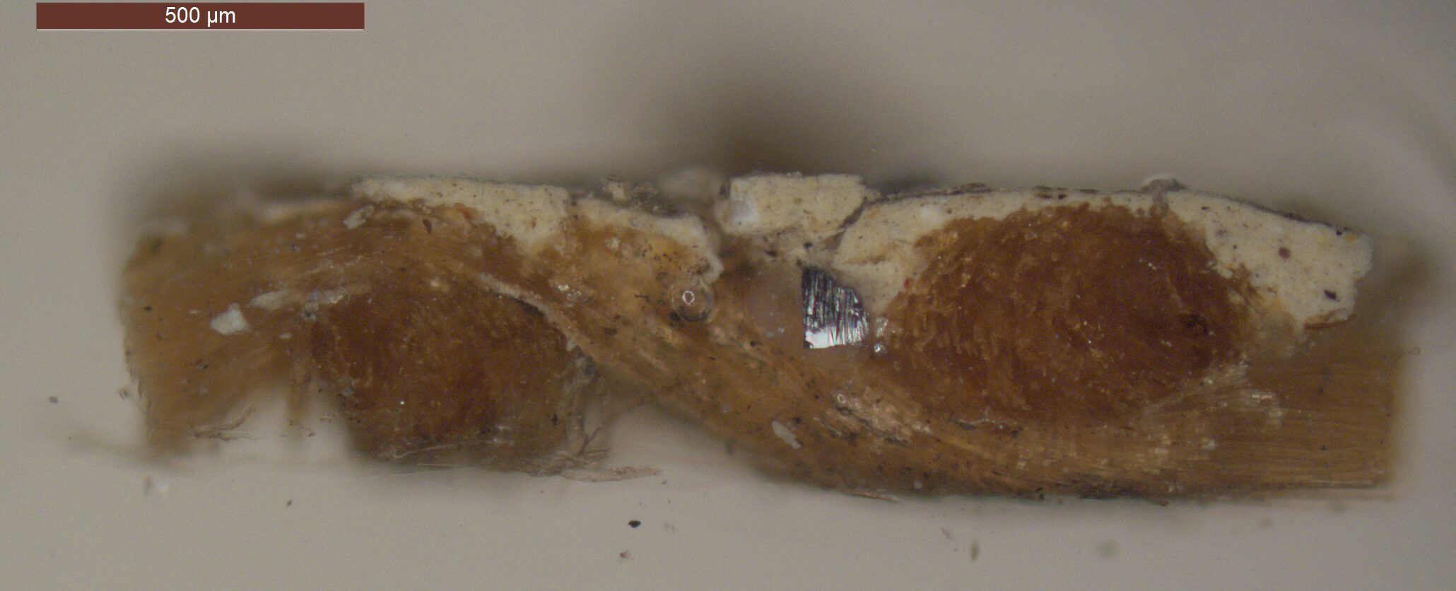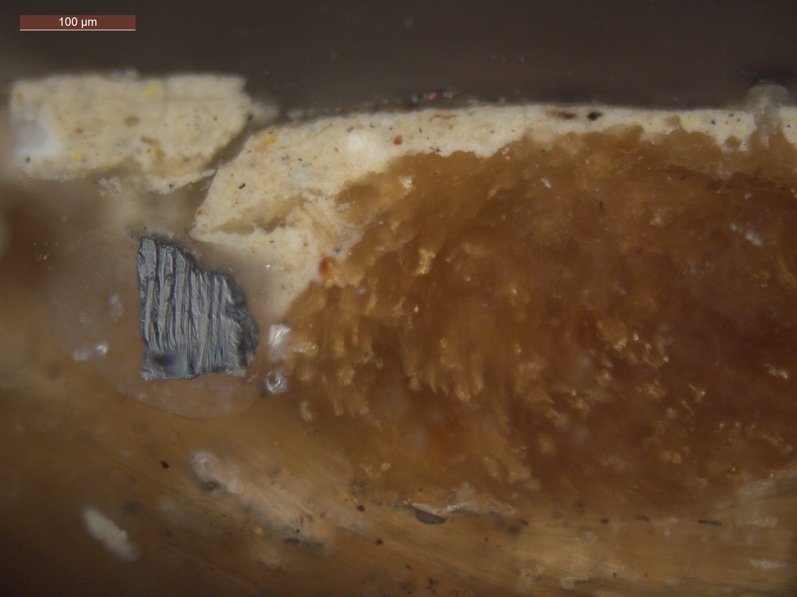 Optisk mikroskopi anvender synligt lys og linser til at forstørre og undersøge maleriets overflade og strukturer. Når teknikken bruges til at undersøge tværsnit af farveprøver gør optisk mikroskopi det muligt at nærstudere maleriets stratigrafi (lagstruktur) og pigmentpartikler. Teknikken anvendes ofte sammen med forskellige belysningstyper, såsom mørkefelt og UV-fluorescens, for at forbedre analysen. Lag nummer 1 under resultater nedenfor henviser til det nederste lag i farvesnittet.