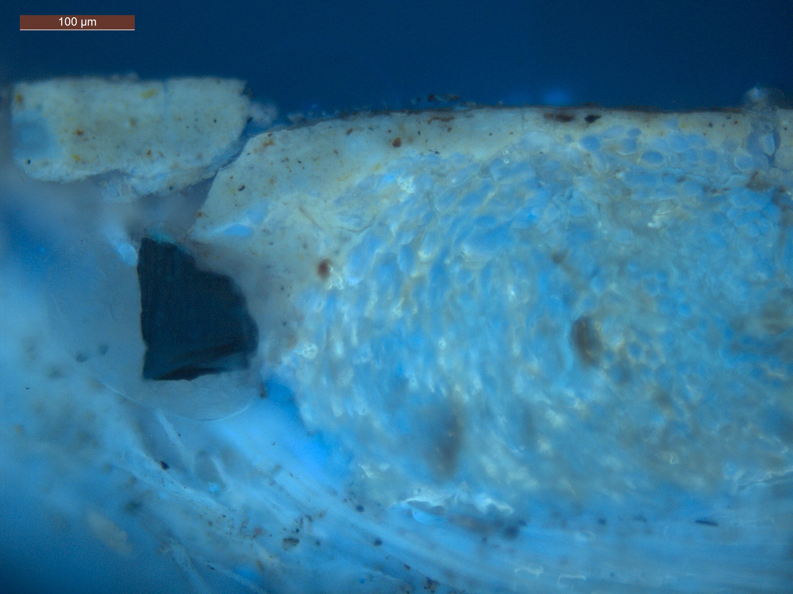 Den grå undermaling har en intens, hvid UV-fluorescens.